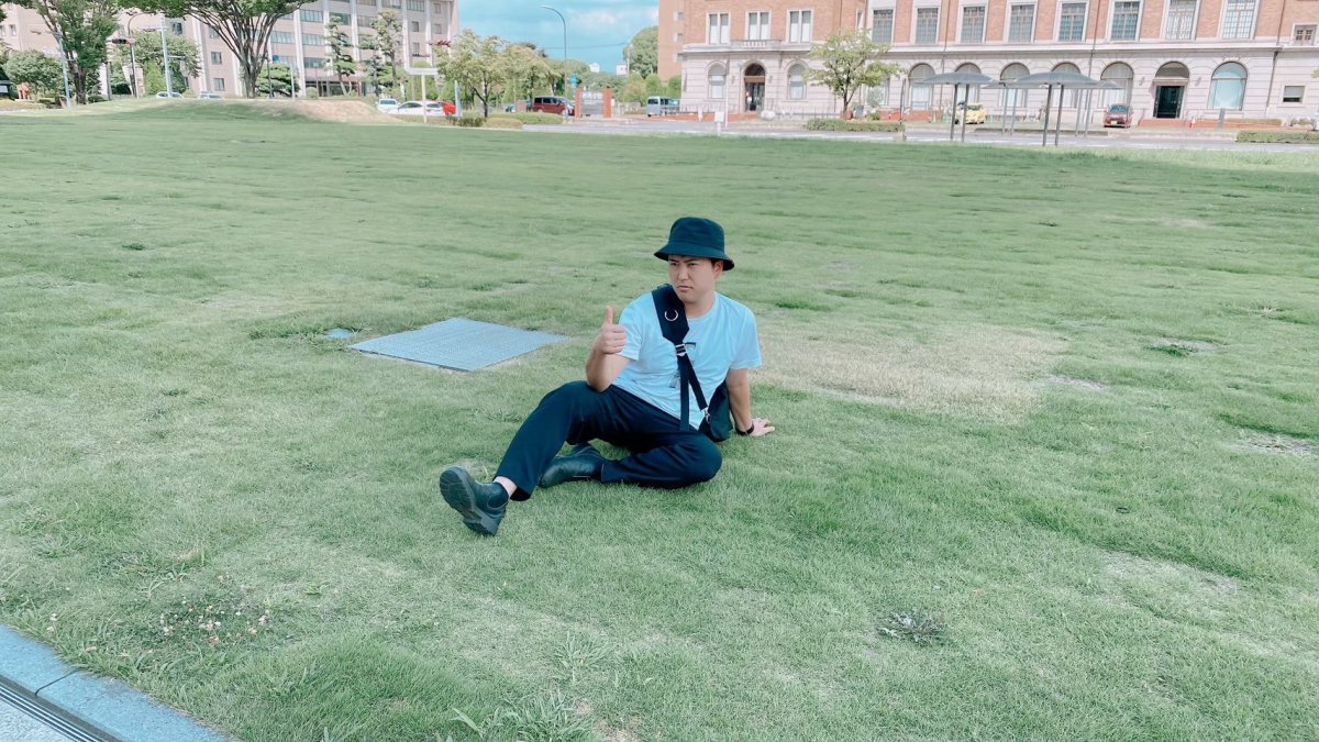 県庁の新しいスポット「GINGHAM(ギンガム)」をみんなで見学しました。 こちらは今後の企画を妄想している様子です。天気も良かったので、芝生も調子良さそうでした。